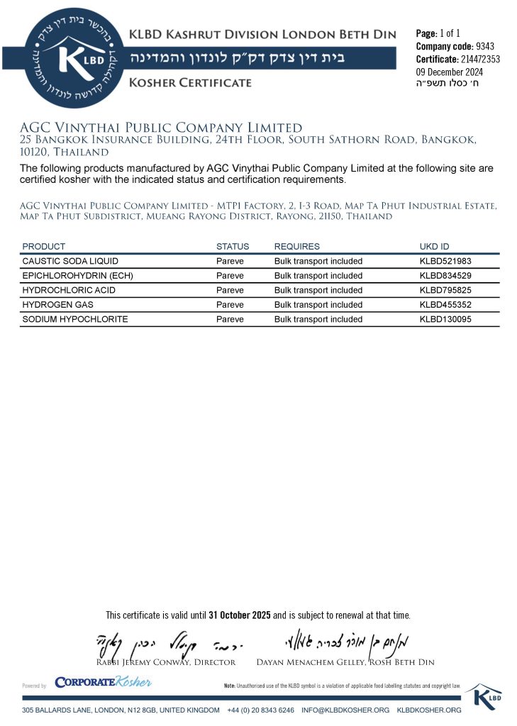 EPINITY®'s production site at Map Ta Phut, Thailand has been certified under the International Sustainability and Carbon Certification (ISCC) PLUS certification system as producing “Bio-Circular Epichlorohydrin” from “Bio-Circular glycerine” (classified as wastes/residues of biological origin following ISCC’s categories). This certified mass-balance approach ensures the sustainability and traceability of our bio-based Epichlorohydrin (ECH).